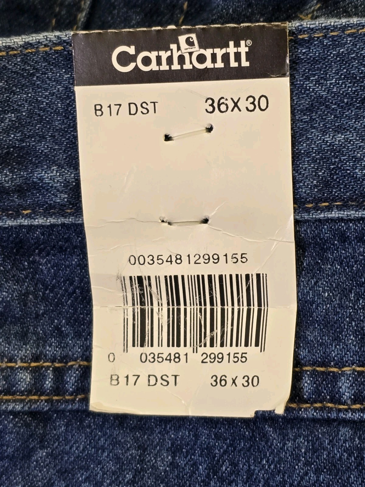 Carhartt Jeans B17DST 36x30 Blue Relaxed Fit 100% Cotton Jeans NWT W/Uniform Tag