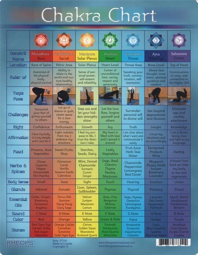 This double-sided chart explains what Chakras are, signs of imbalance, and a path to healing the Chakras, as well as correspondences.
