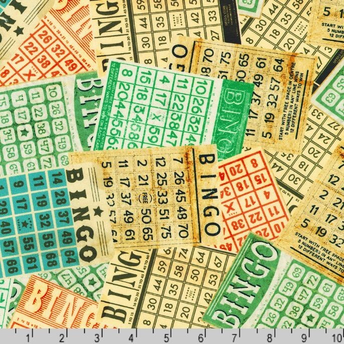 Cotton Library of Rarities Bingo Cards Sheets Game Night Antique Robert Kaufman Cotton Fabric Print by the Yard (SRKD-23356-200) Cotton Fabric Print - 44" Wide - Sold by the Yard 100% Cotton Multiple yards are one continuous cut. Not intended for use in childrens sleepwear.