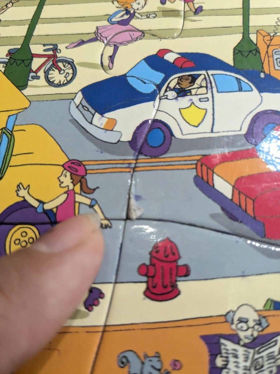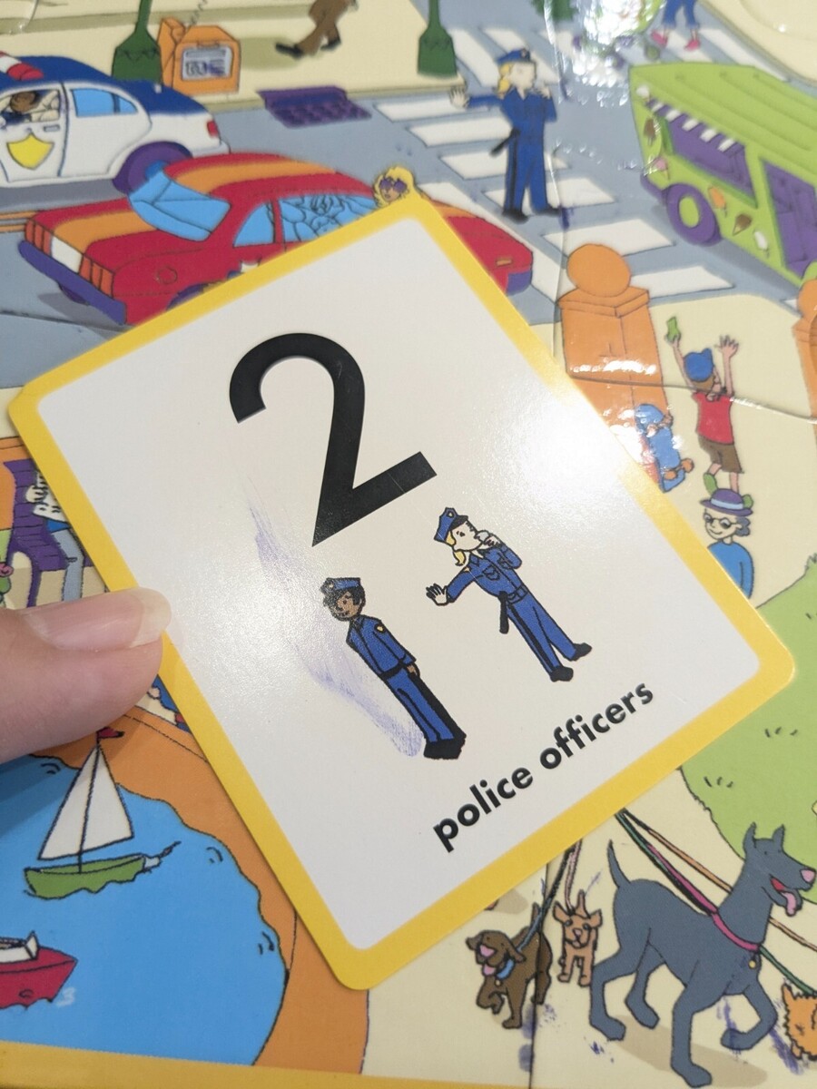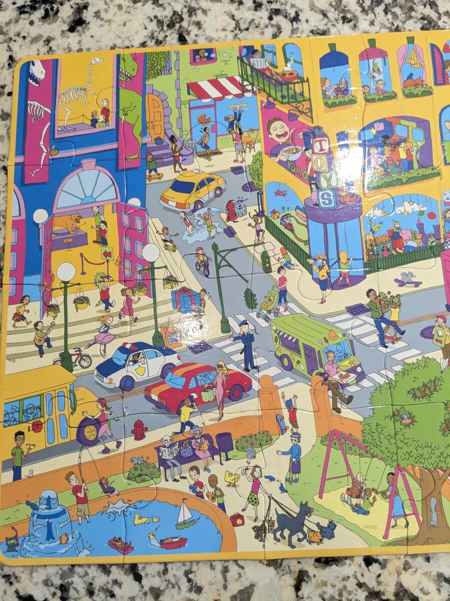Cranium Puzzles Plus Seek Find Let's Go to the City puzzle game 24 pieces kids Includes all puzzle pieces. Missing 1 card and dry erase marker. Some minor wear from use as shown, but overall very good condition.