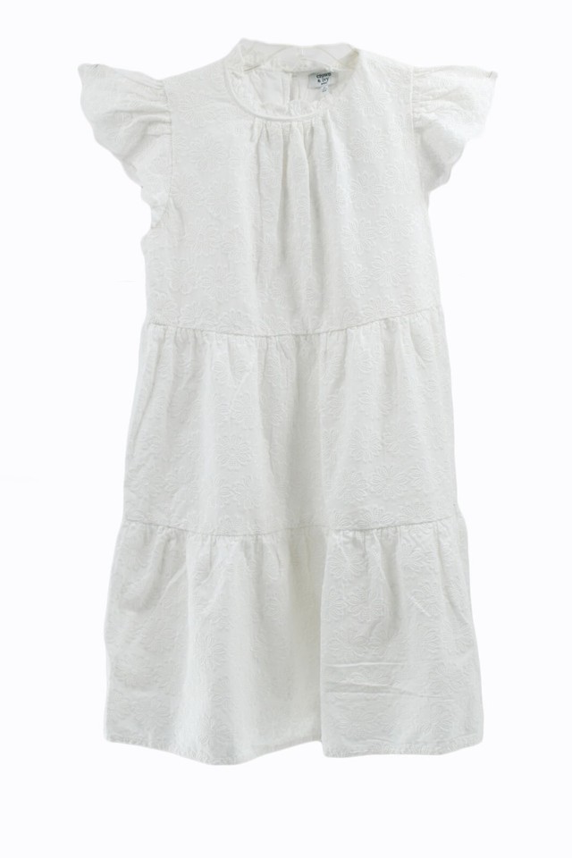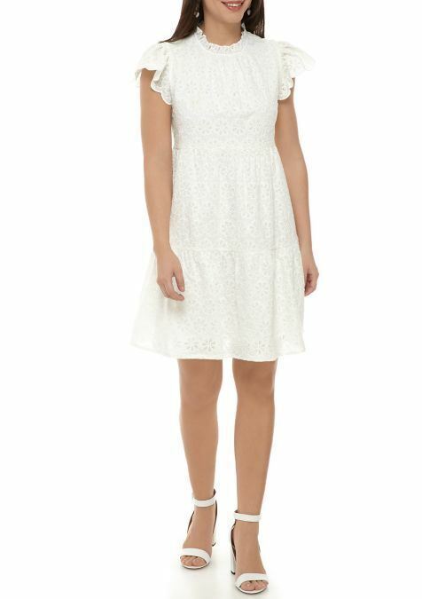 Crown & Ivy Women Cotton Short Sleeve Tiered Dress Sz Petite Small White