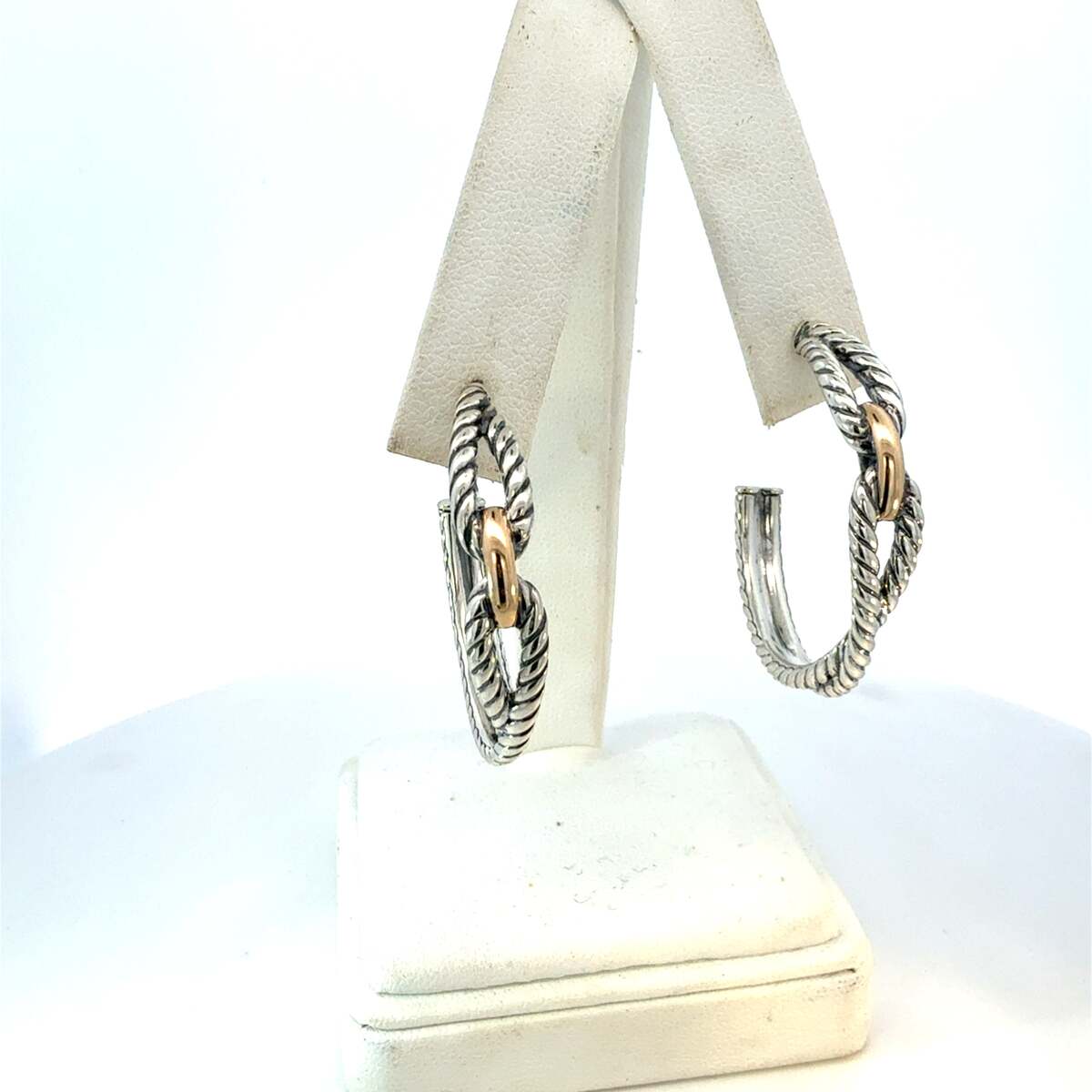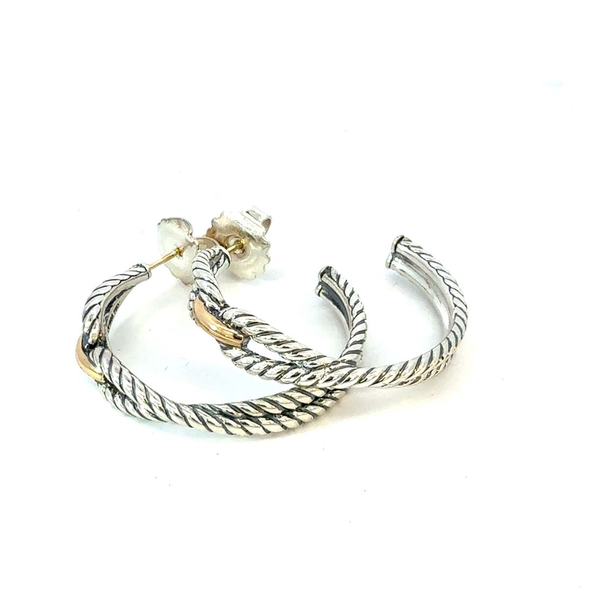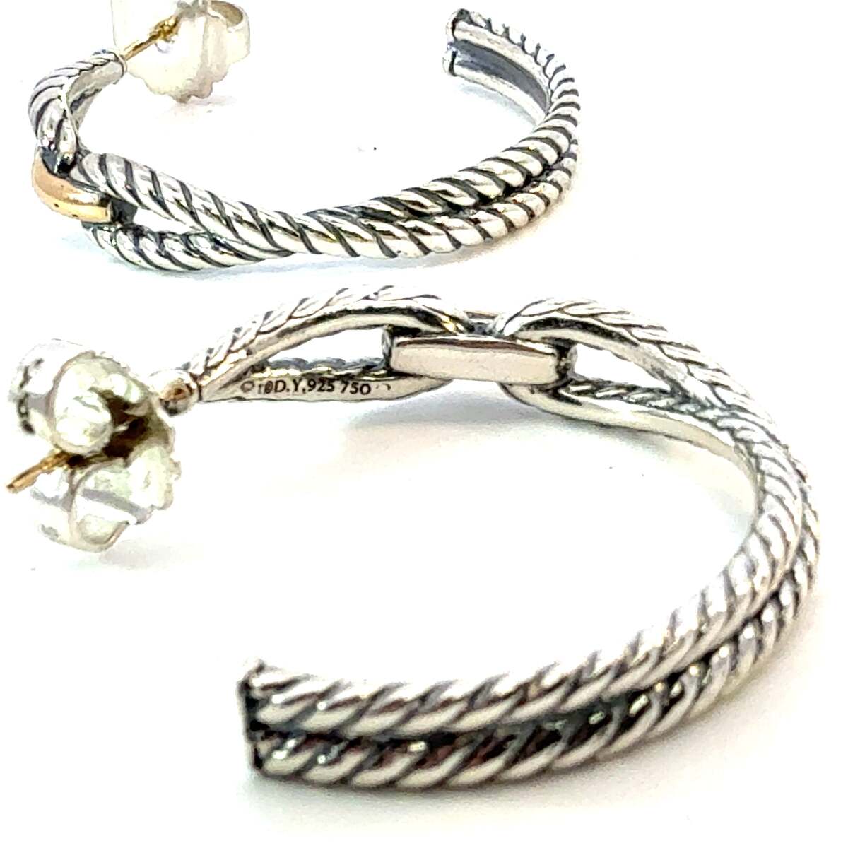 - David Yurman 18k Gold & Silver Hoop Earrings Sterling Silver Estate DY616