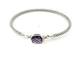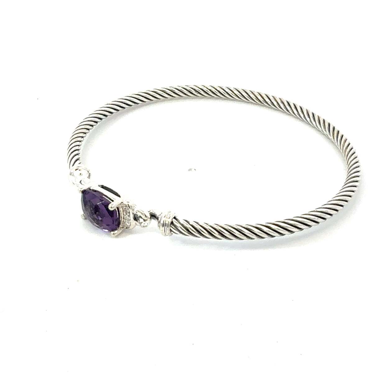 - David Yurman Diamond Amethyst Cuff Bracelet Size M 3 mm Silver Estate DY740