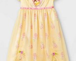 She'll be as elegant and royal as one of her favorite Princesses Belle in this deluxe nightgown. Features a sweet and colorful cameo graphic of Belle surrounded by a floral and scroll design. Soft yellow tulle across with bodice with a small pink rosette accent in the middle A coordinating overlay and skirt section adorned by pink roses throughout. Polyester