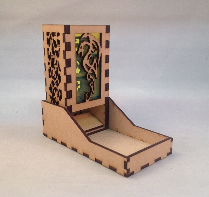 - Dragon v4 Dice Tower & Tray Neon Green Acrylic Window COMPACT DESIGN Laser Cut