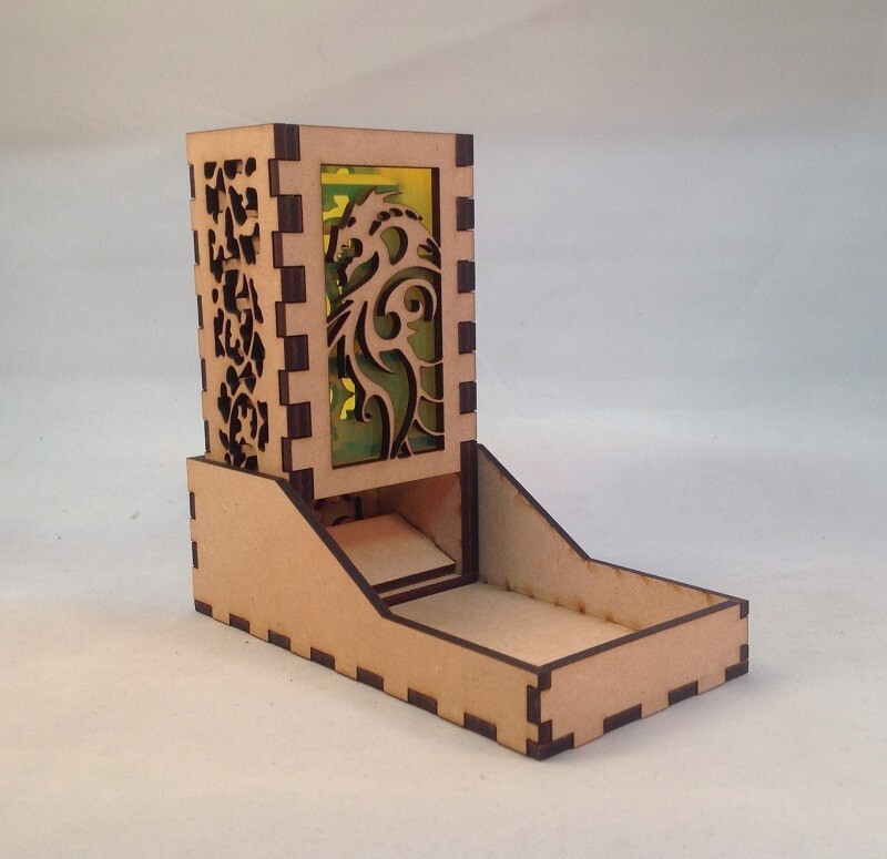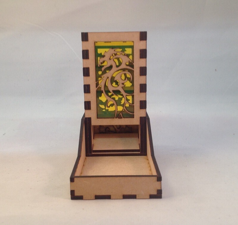 - Dragon v6 Dice Tower & Tray Neon Yellow Acrylic Window COMPACT DESIGN Laser Cut