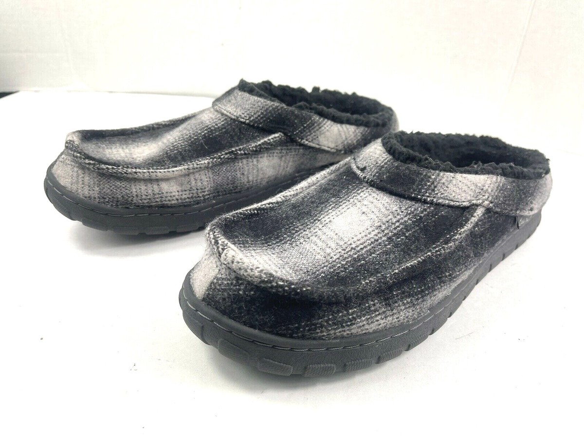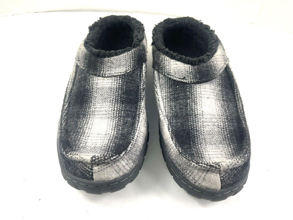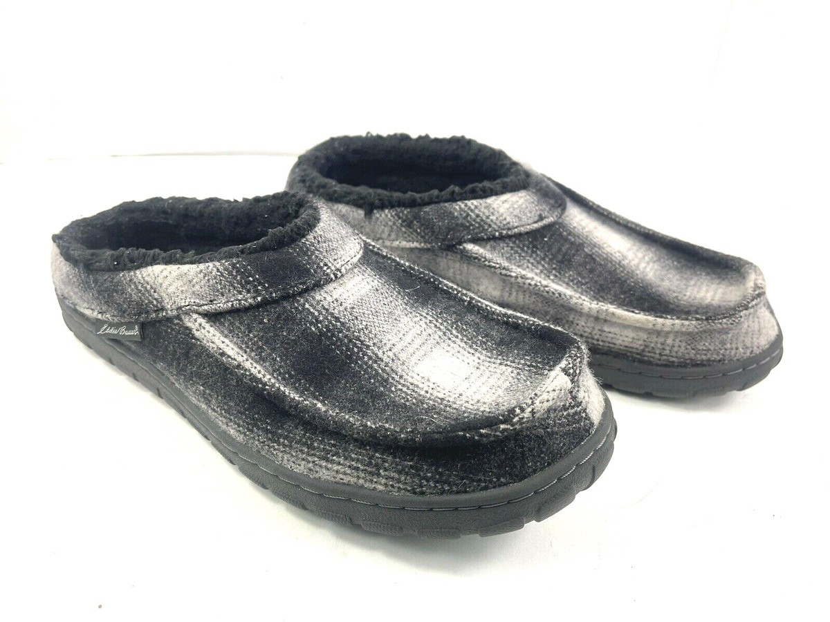 Eddie Bauer Slipper Men 9 MYurt Shoes Black White Plaid Slip on Moccasin