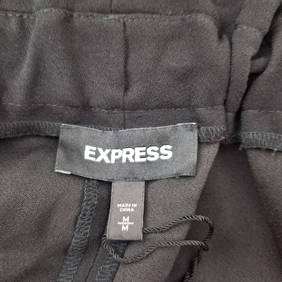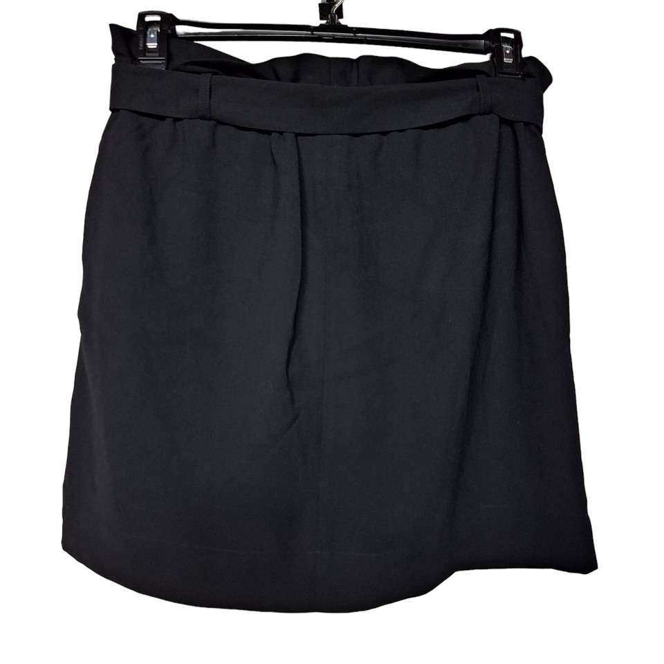 Express Womens A Line Skirt Size Medium Solid Black Belted Ruffles Style: A Line Skirt Color: Black Size: Medium Condition: Excellent pre owned condition with normal wear. From a smoke free and pet free home. Measurements are approximate and were taken with garment lying flat. Waist: 30" Hip: 36" Length: 18.5" 34-19