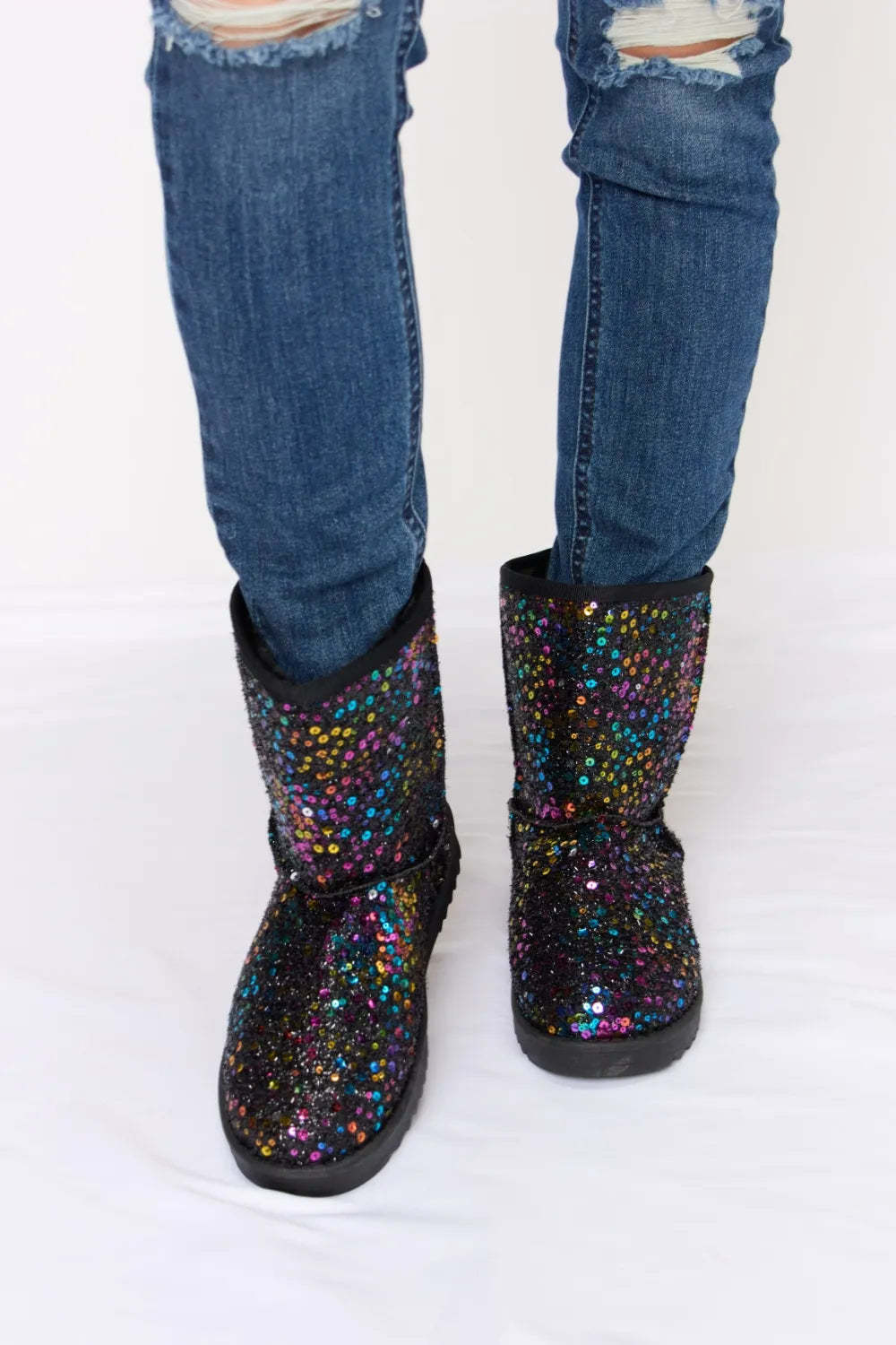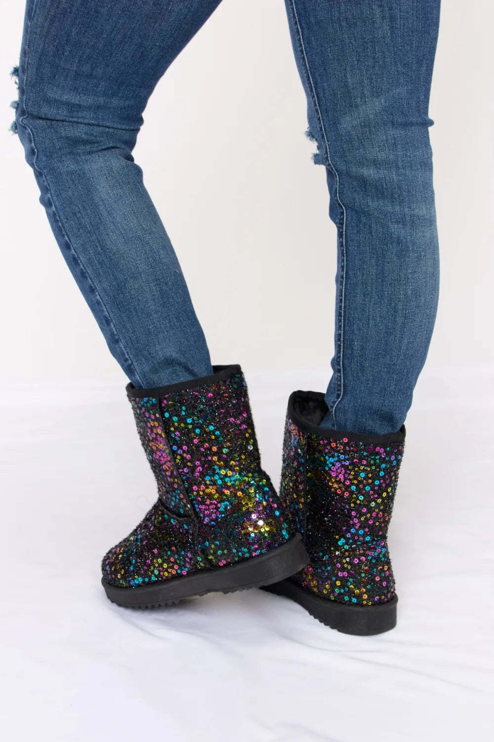 Sequin Thermal Flat Boots are the perfect blend of style and warmth. With their sequin detailing, these boots add a touch of sparkle and glamour to your winter wardrobe. The thermal lining keeps your feet cozy and protected from the cold weather. Whether you're braving the winter streets or heading out for a night on the town, these flat boots will keep you stylish and comfortable. Step out in confidence and make a statement with these sequin thermal flat boots.