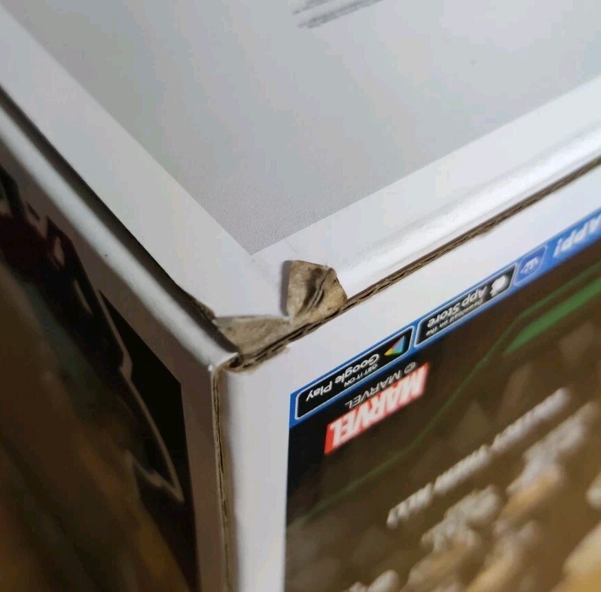 Exclusive to Target, this collectible is from the Pop! Rides Deluxe collection and includes exclusive features like being vaulted. The product comes in a damaged packaging box, adding to its uniqueness and appeal for collectors of Marvel-themed items.