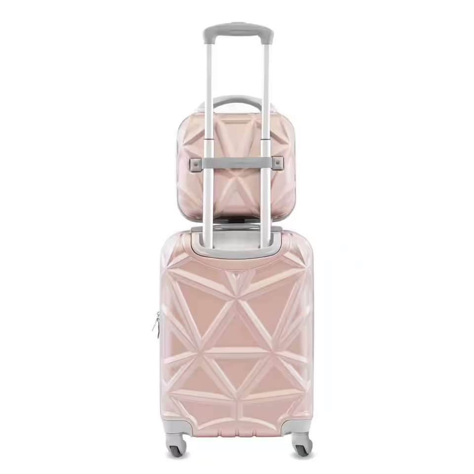 - Gem 2-Piece Rose Gold Carry-On Spinner Cosmetic Suitcase