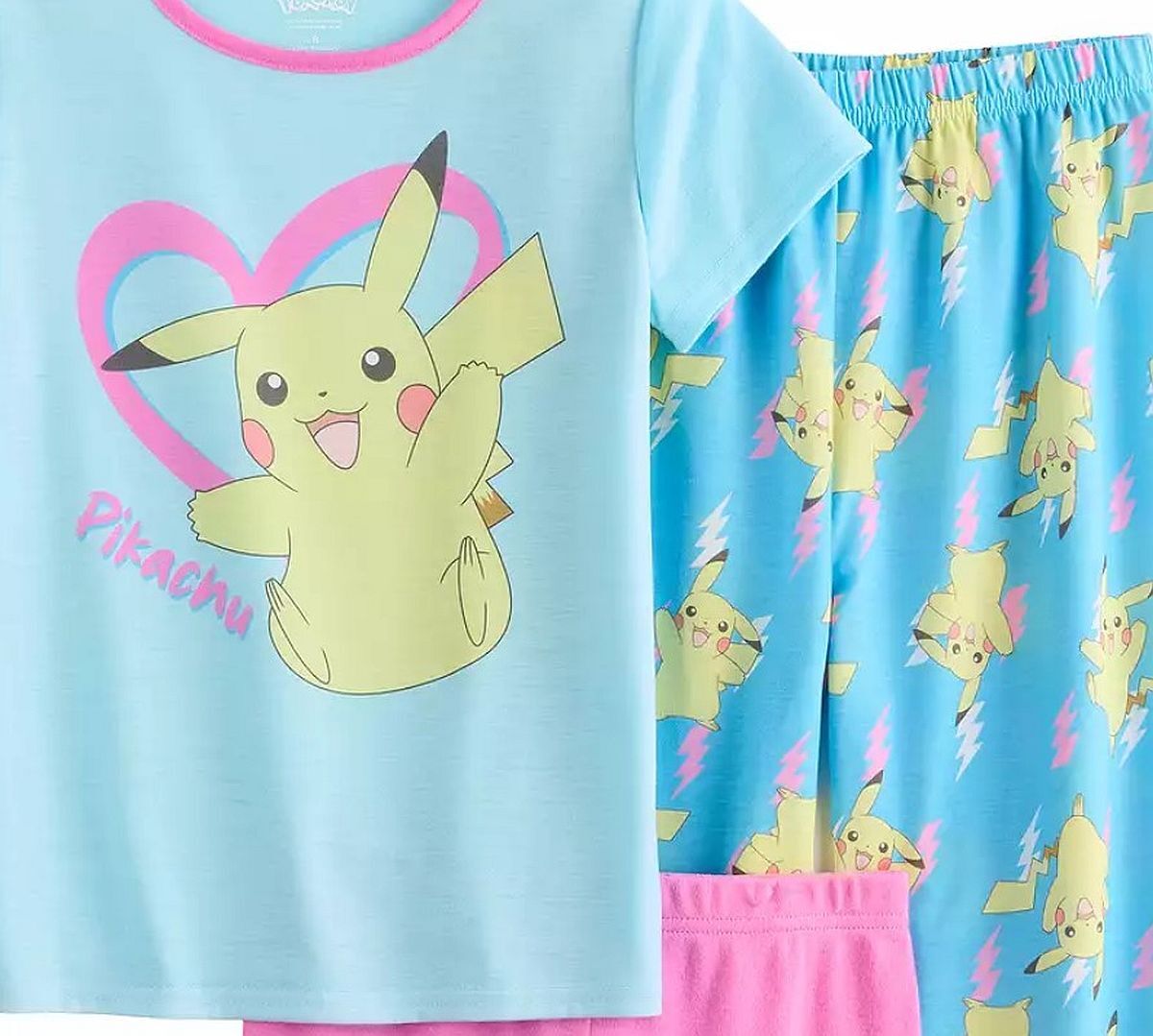 - Girl's Pokemon Pickachu 3-Piece Short-Sleeved Character Pajama Set