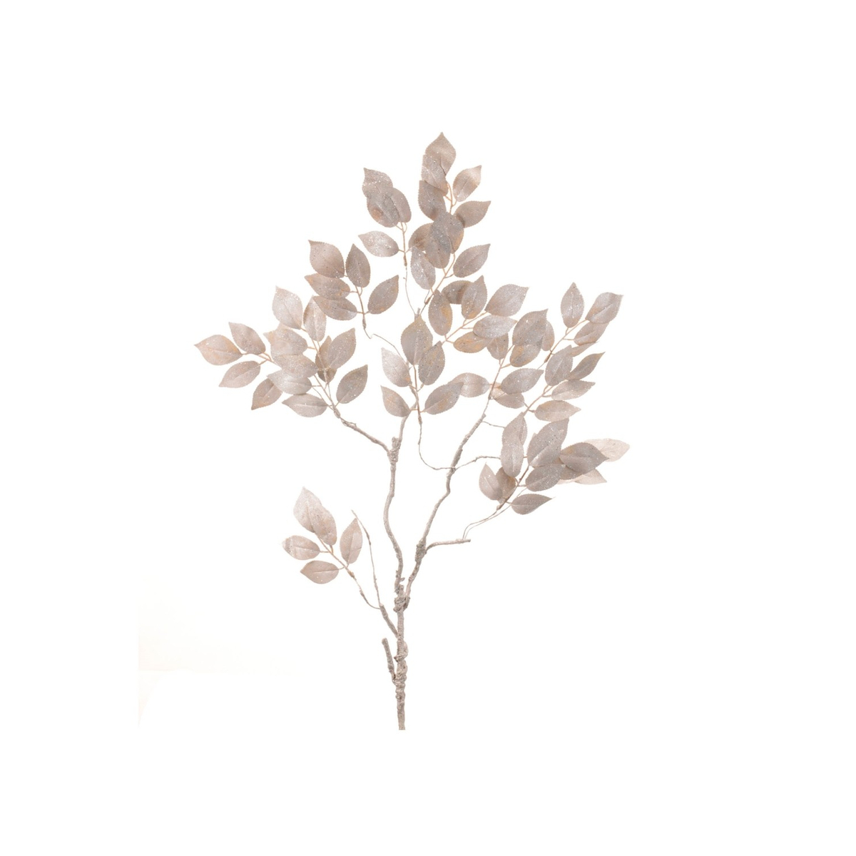Elevate your holiday decor with this Sparkling Silver Glittered Leaf Spray set. Featuring festive silver and champagne tones with elegant glittered accents, these sprays add a wintry charm to any arrangement. Designed with a wired stem and flexible branches, they offer sturdy and versatile styling options. Perfect for enhancing Christmas wreaths, garlands, floral centerpieces, or seasonal porch pots, this set brings a radiant, shimmering touch to your holiday displays. With a set of 6, you have plenty of options to create stunning festive floral displays throughout your home.