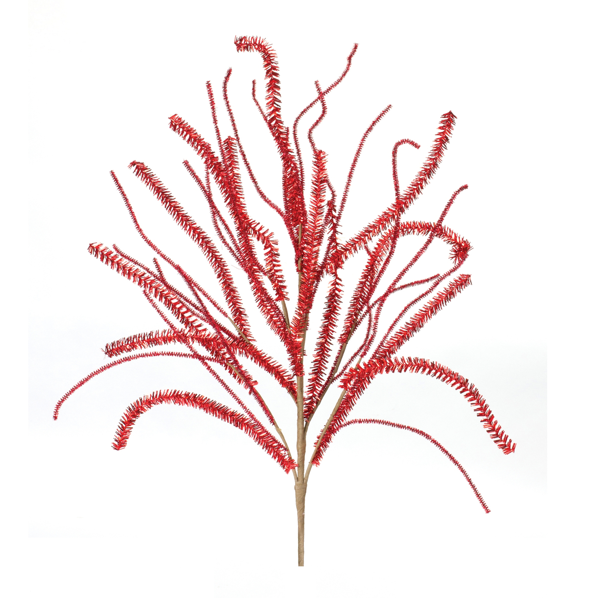 Bring a festive touch to your holiday decor with this Glittered Pine Tinsel Branch. Designed to add shimmer and elegance, these red Christmas stems are perfect for enhancing your Christmas tree, seasonal wreaths, table centerpieces, or holiday porch pots. The delicate tinsel accents and rich red tones create a sparkling, eye-catching display. Made from high-quality plastic, these durable branches are designed to last for seasons to come. Whether used alone or mixed with other holiday greenery, these Christmas sprays bring the perfect amount of holiday cheer to any setting. Sold in a set of two matching pieces to create a balanced display in your home.