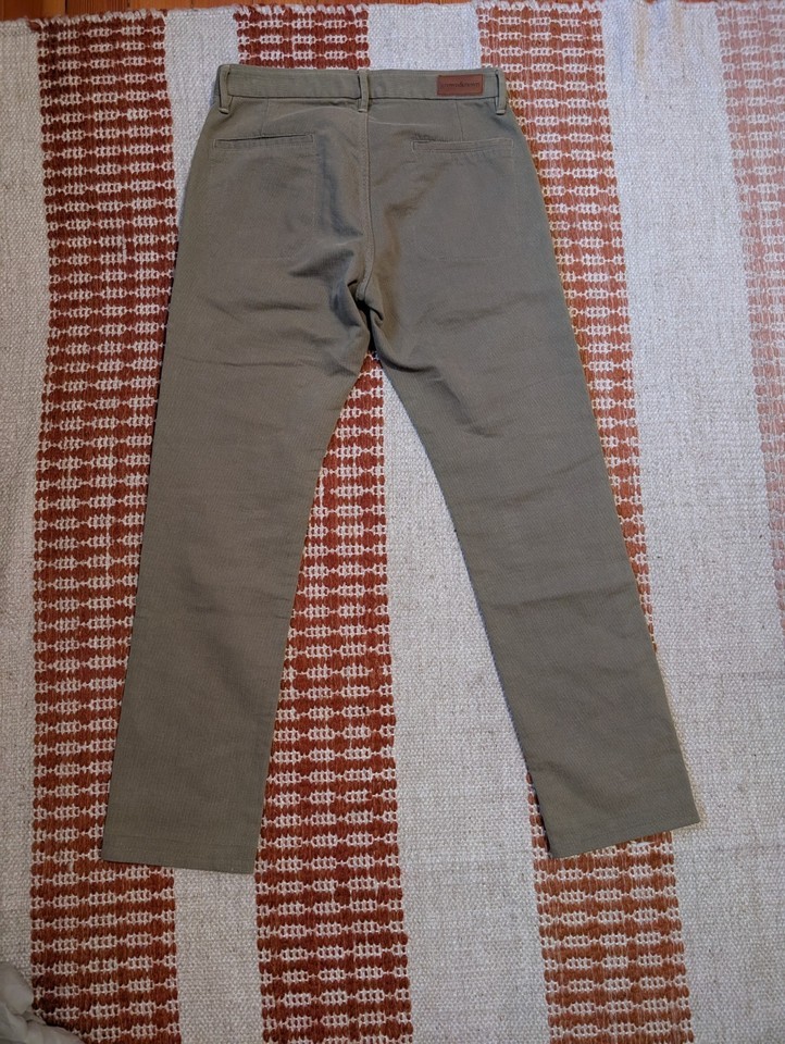 - Grown & Sewn Pants The Independent 29x30 Green Tan Bedford Cord USA Button Fly