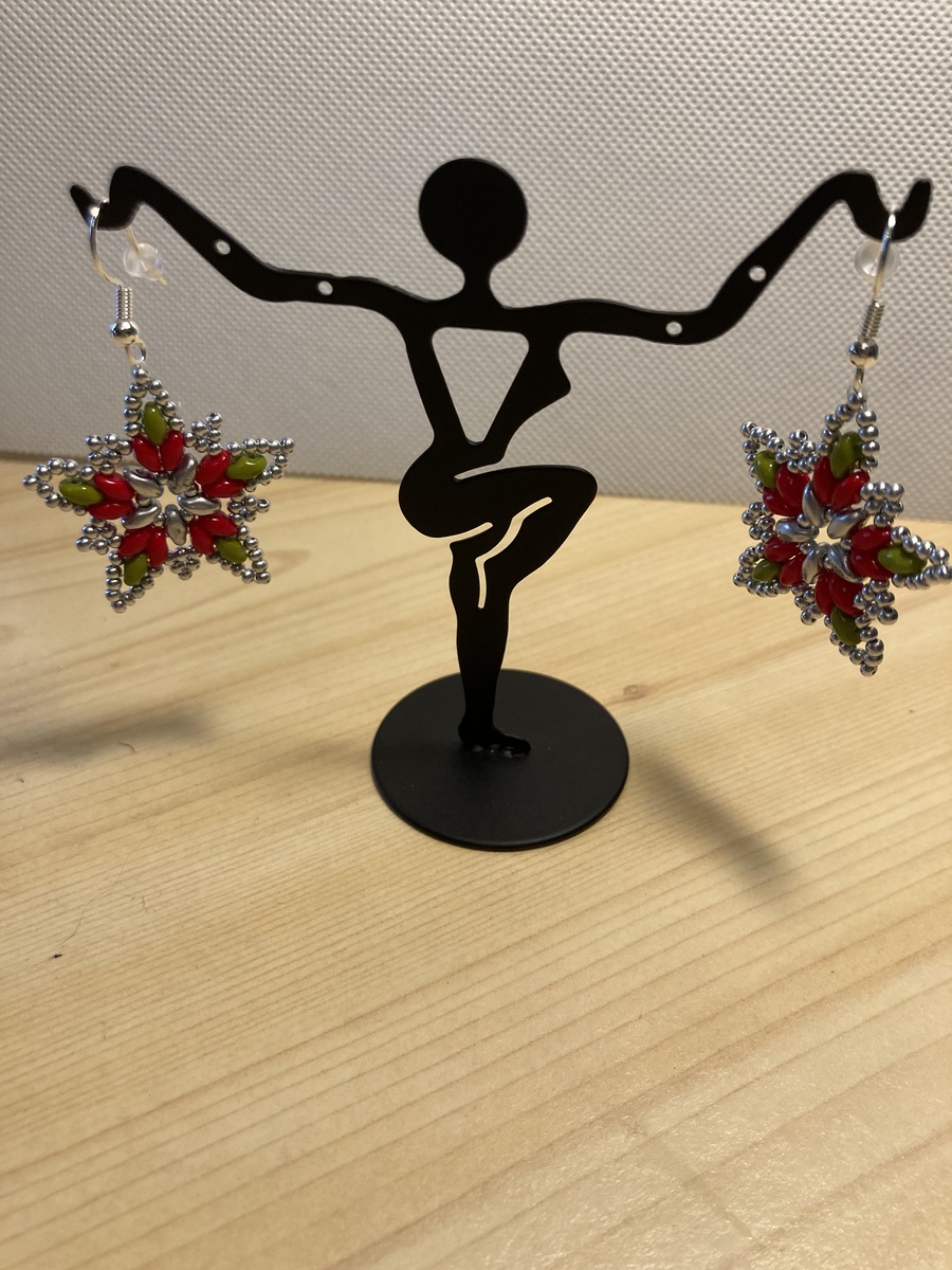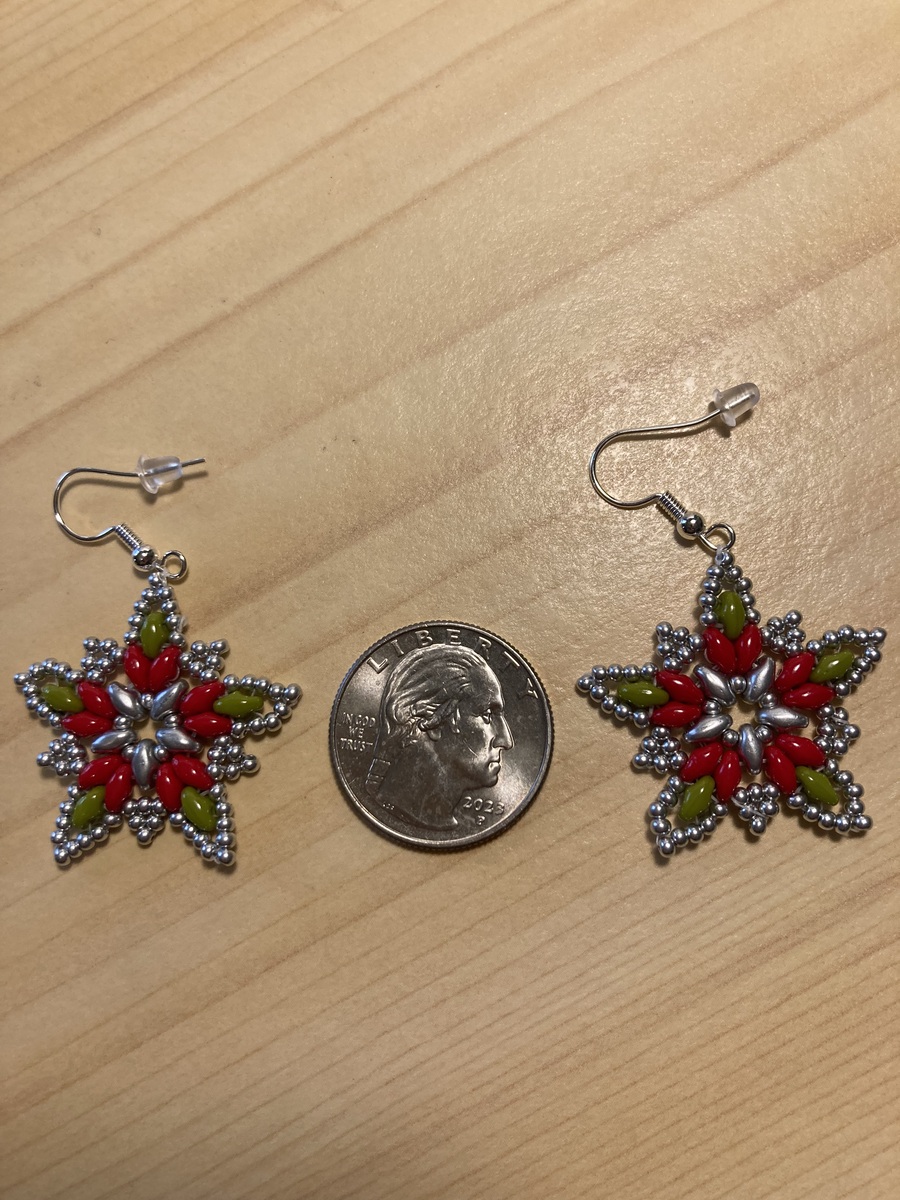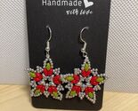 Handmade, hand threaded Star/Poinsettia shaped earrings. Great for Christmas or anytime. Awesome gift idea.
