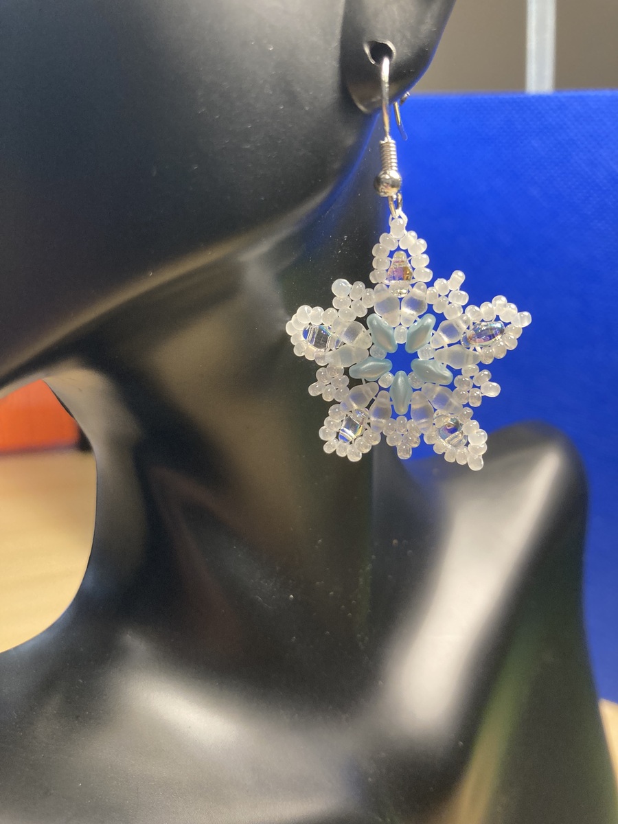Handmade, hand threaded Star/Snowfake shaped earrings. Great for Christmas or anytime. Awesome gift idea.