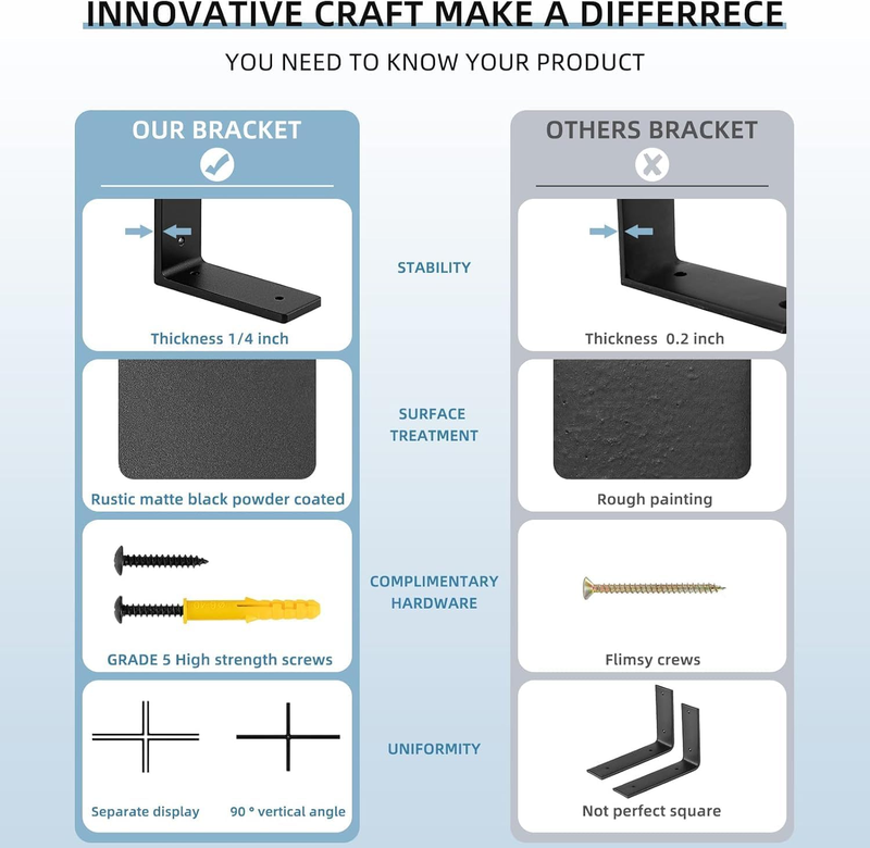 ?PERPENDICULARITY? Each bracket is designed to ensure a perfect 90-degree vertical angle, providing stability and support for your shelving needs.