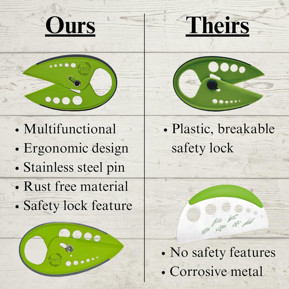 MULTIFUCTIONAL HERB TOOL: Quickly and effectively harvest fresh herbs, peel the leaves from the stems, and prepare for cooking. This versatile tool is perfect for peeling herbs, kale, beet, basil, thyme, rosemary, and other plants. Additionally, it can serve as a pruner for cutting house plants and garden produce, making it an essential addition to any kitchen. UNIQUE 2 in 1 DESIGN: Transition seamlessly from harvesting herb stems to stripping leaves with a quick slide of the stainless steel locking bolt. Made from heavy-duty food-grade material, this tool is solid and sturdy. The 10 different size stripper holes (1mm, 3mm, 4mm, 5mm, 7mm, 10mm, 12mm, 13mm, 15mm) accommodate a variety of herbs, ensuring versatility in your culinary endeavors. COMFORTABLE DESIGN: Designed with user comfort in mind, this herb stripper is the perfect size for most hands, featuring a comfortable grip. It is dishwasher safe for easy cleaning, and the stainless steel locking bolt is designed to withstand wear and tear, ensuring it will not break or rust over time.