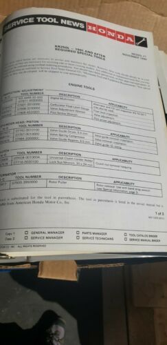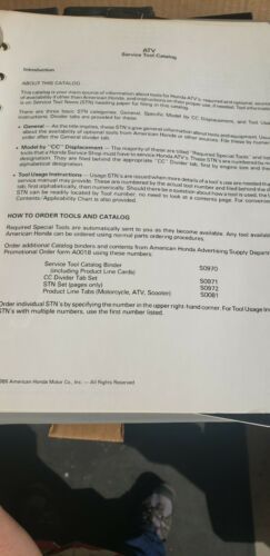 - Honda Dealer Motorcycle Atv Scooter Service Tool Catalog binder 1982 to 1995