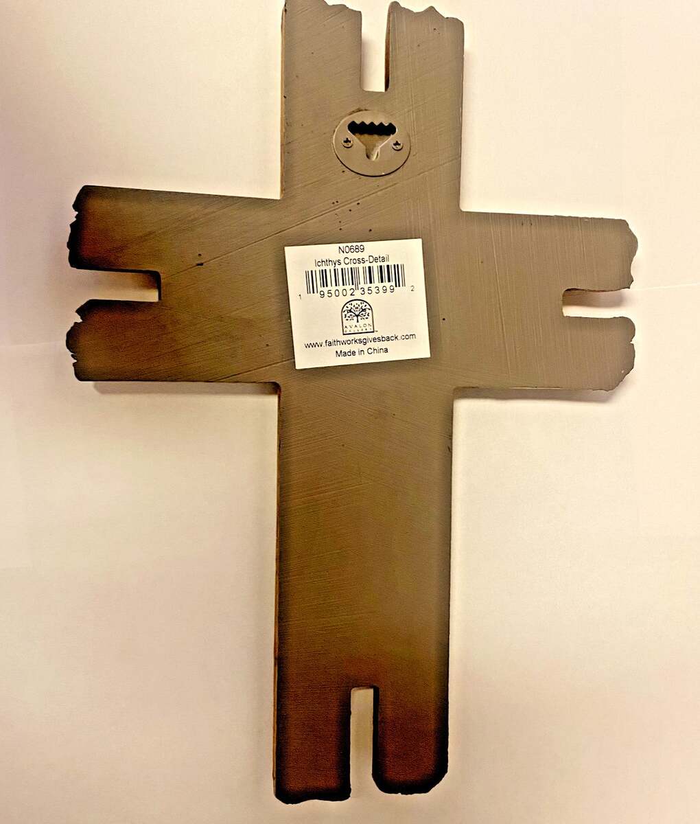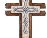 You are purchasing a very nice wood looking decorative 10" resin cross, with the timeless Ichthys symbol.