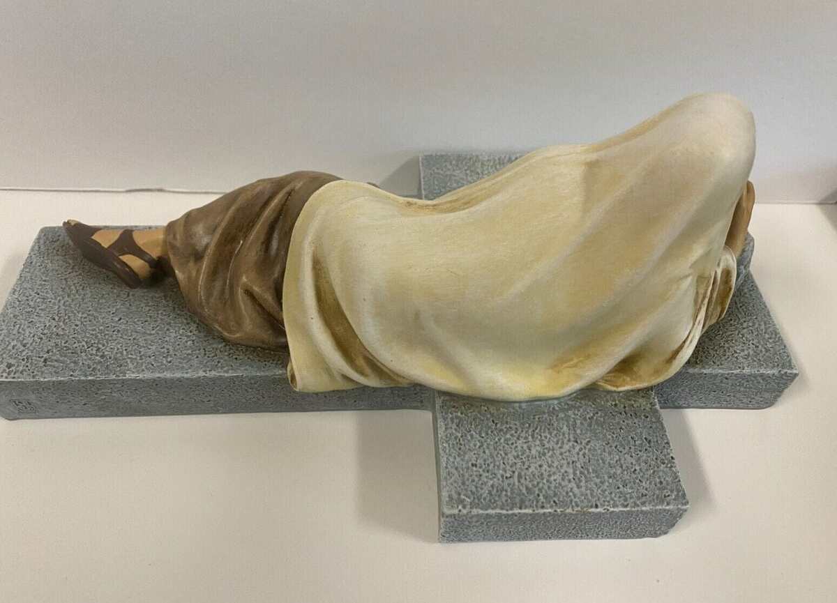 You are purchasing a very nice, yet painful statue/cross of Jesus lying down on the cross, (he was actually lying on the ground), raising his eyes towards the sky/heaven imploring to God the father for what was to come.