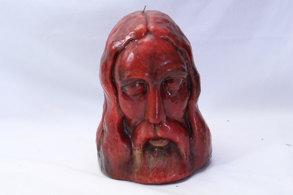 - Jesus Christ Head Bust Candle 9-1/2" Tall Red Wax