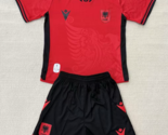 - Kids 2025-26 Albania Home Red Kits Shirt Jersey With Shorts