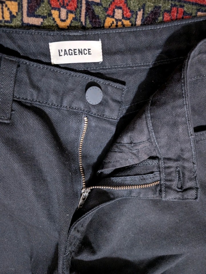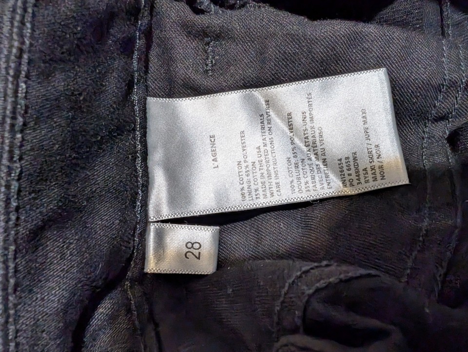 - L'AGENCE Rysa Jean Maxi Skirt Size 28 Black Denim Slit Raw Hem Zip Fly Luxury