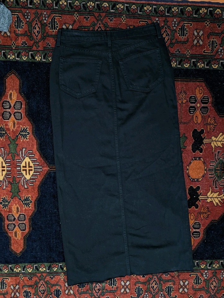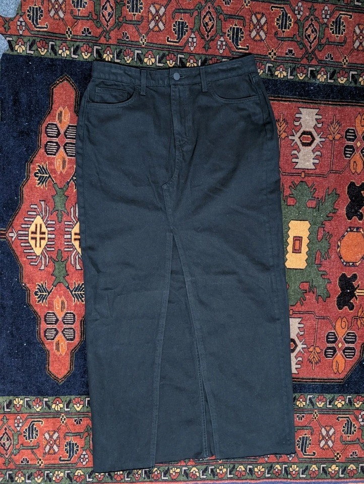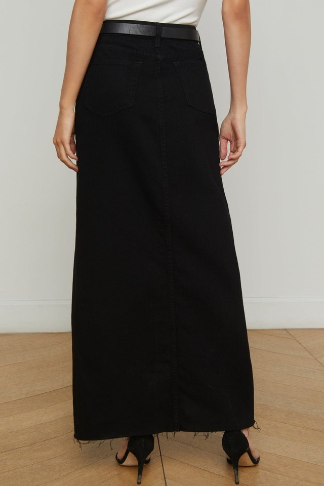 L'AGENCE Rysa Jean Maxi Skirt Size 28 Black Denim Slit Raw Hem Zip Fly Luxury