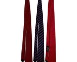 Includes two shades of burgundy with refined geometric motifs and one navy tie with diagonal purple stripes. Each measures approximately 56 inches long by 3 inches wide.