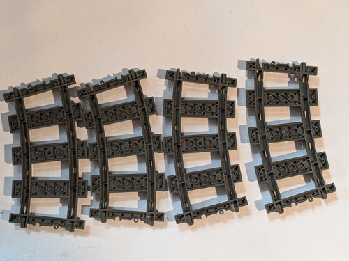 Lotto Di 4 LEGO 9v Metallo Binario Curvo 4520 2867 4511 4512 4558 Old Grigio