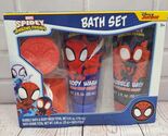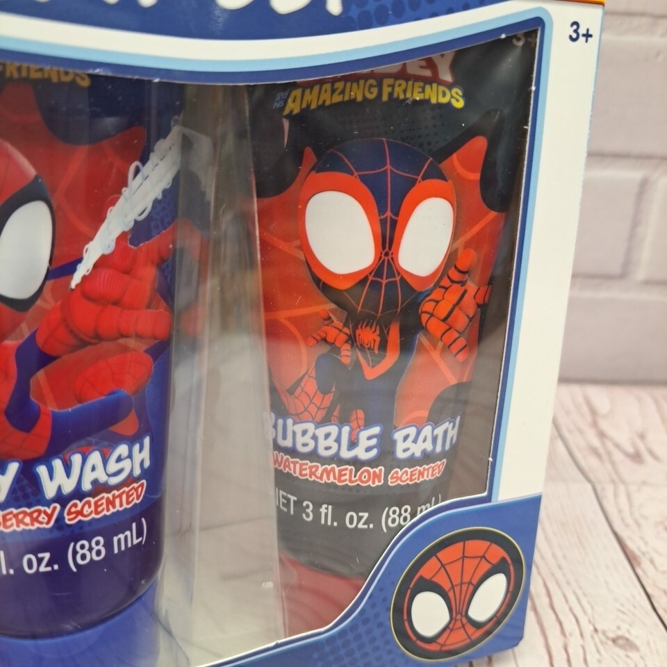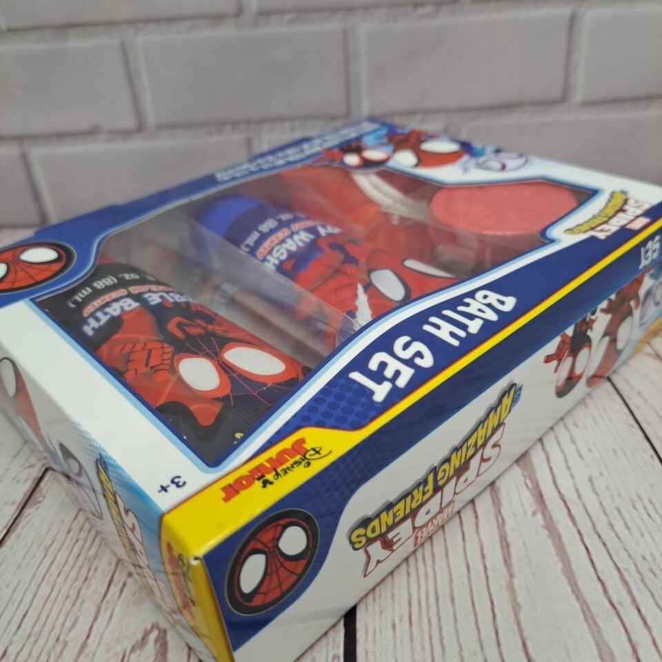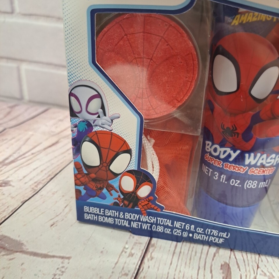 - Marvel Spidey 4 Piece Bath Set, Bubble Bath,Body Wash,Bath Bomb & Small Pouf NIB
