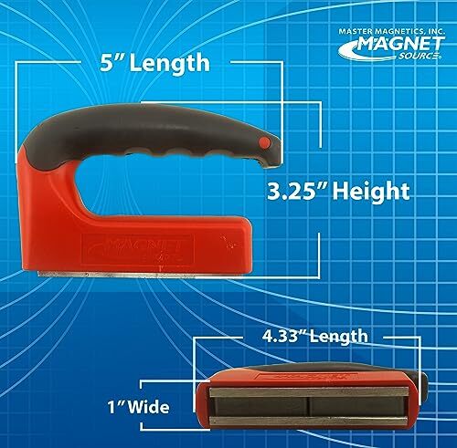 - Master Magnetics Strong Magnet with Ergonomic Handle - 100 lb Pull Force, Red, 0