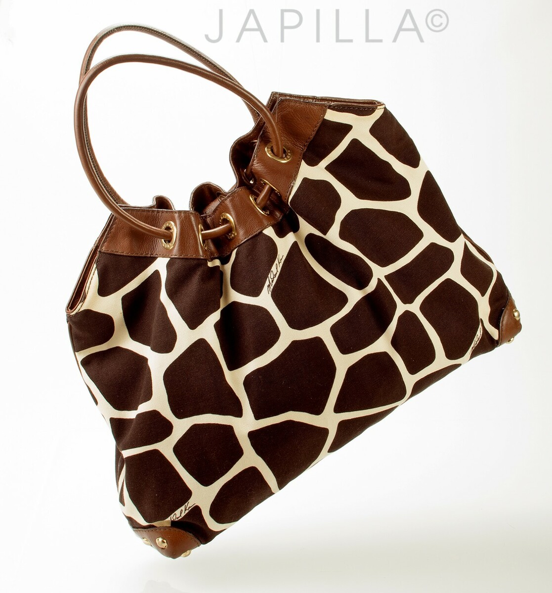 - MICHAEL KORS PRINTED CANVAS BROWN LEATHER SATCHEL PURSE!