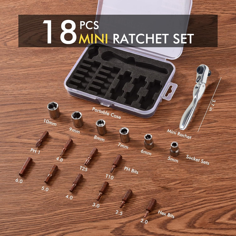 This mini ratchet tool set small size is perfect for tight spaces, and the comfortable grip allows for easy use. With multiple heads and sockets, you can tackle various tasks without needing to twist your wrist constantly. its sturdy compact and easy to use.