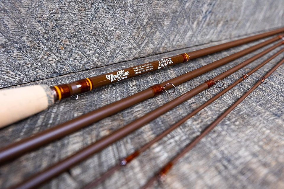 The Moonshine Rod Co. Drifter II is designed for anglers who want classic looks, modern performance, and unmatched reliability on the water. Built with higher-modulus carbon fiber, this 5WT 9' rod is lighter, stronger, and more responsive than the original Drifter, offering a smooth Moderate-Fast action that excels in both short presentations and long-distance casting.