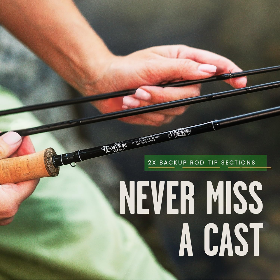 This listing includes the extra rod tip section?a signature Moonshine advantage?so you?ll never be sidelined by accidental damage in the field.