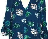 NWT Dragonfly Womens Floral Blouse Top Size XS Blue Plunge Neck Long Sleeve