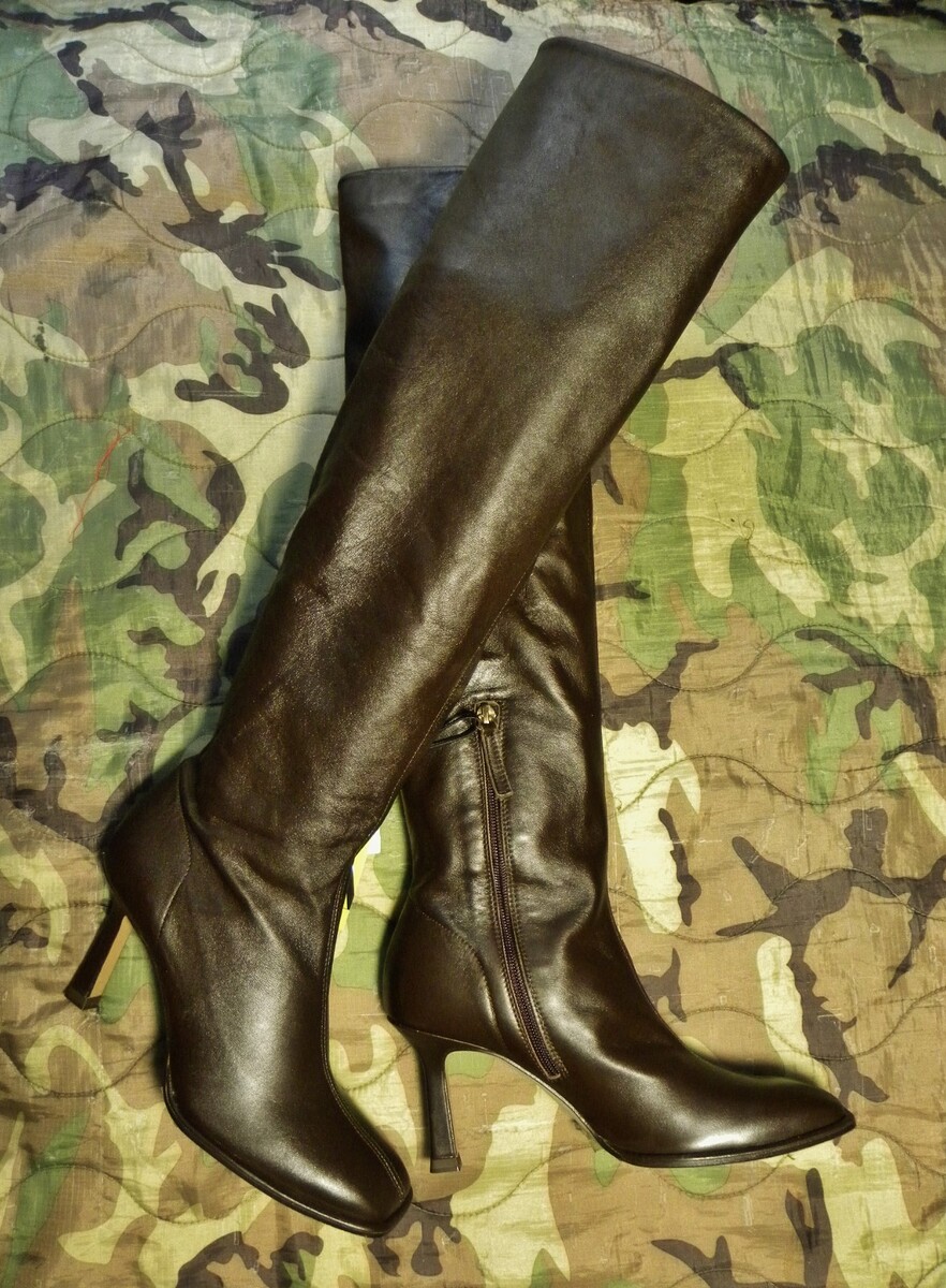 - NWT Zara Over The Knee Leather Boots--Dk Chocolate Medial zips Womens 8 Euro 39