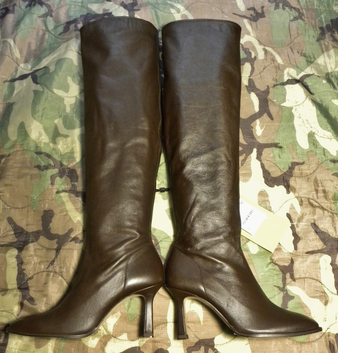 NWT Zara Over The Knee Leather Boots--Dk Chocolate Medial zips Womens 8 Euro 39