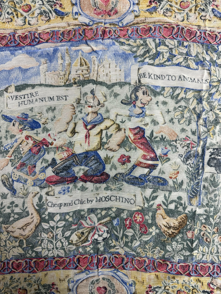 New With Tags MOSCHINO Cheap and Chic Popeye Olive Oyl Be Kind To Animals Scarf Made in Italy We guarantee authenticity on all the items we sell Comes as shown