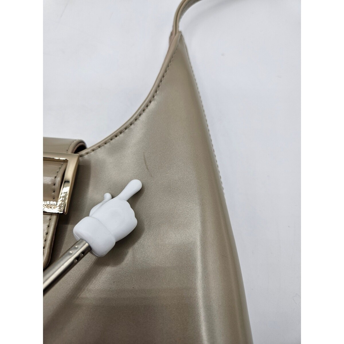 Nine West Women's Patent Leather Shoulder Bag Dark Cream Magnet Closure