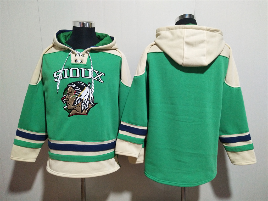 North Dakota Fighting Sioux Blank Cream Green Black Pullover Hoodie