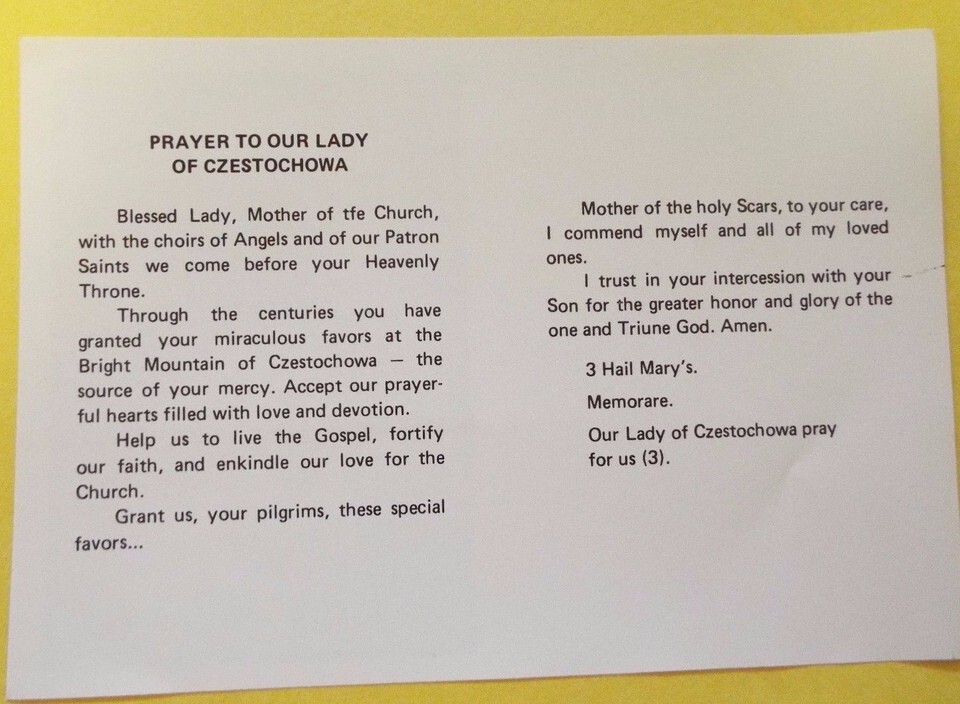 - Our Lady of Czestochowa (Folder Style) Prayer Card, New