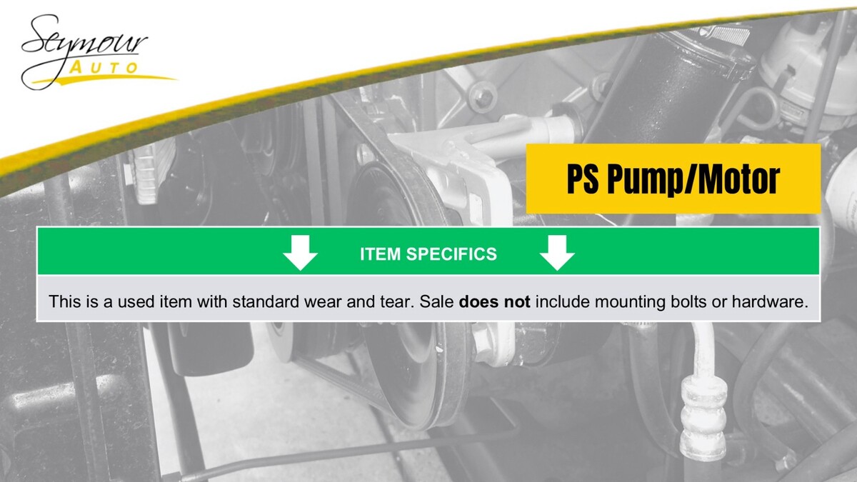 All parts listed as, Pick Up Only, will be held at Seymour Auto Wrecking (107 New Haven Rd, Seymour CT 06483) for the buyer.
