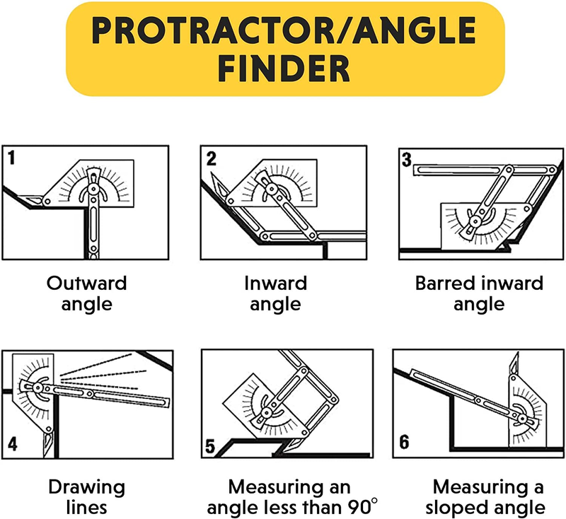 VARIOUS PROJECTS: Protractor/angle finder is ideal for construction jobs, cabinet-making and fine carpentry, where a standard protractor or t-bevel won't fit.