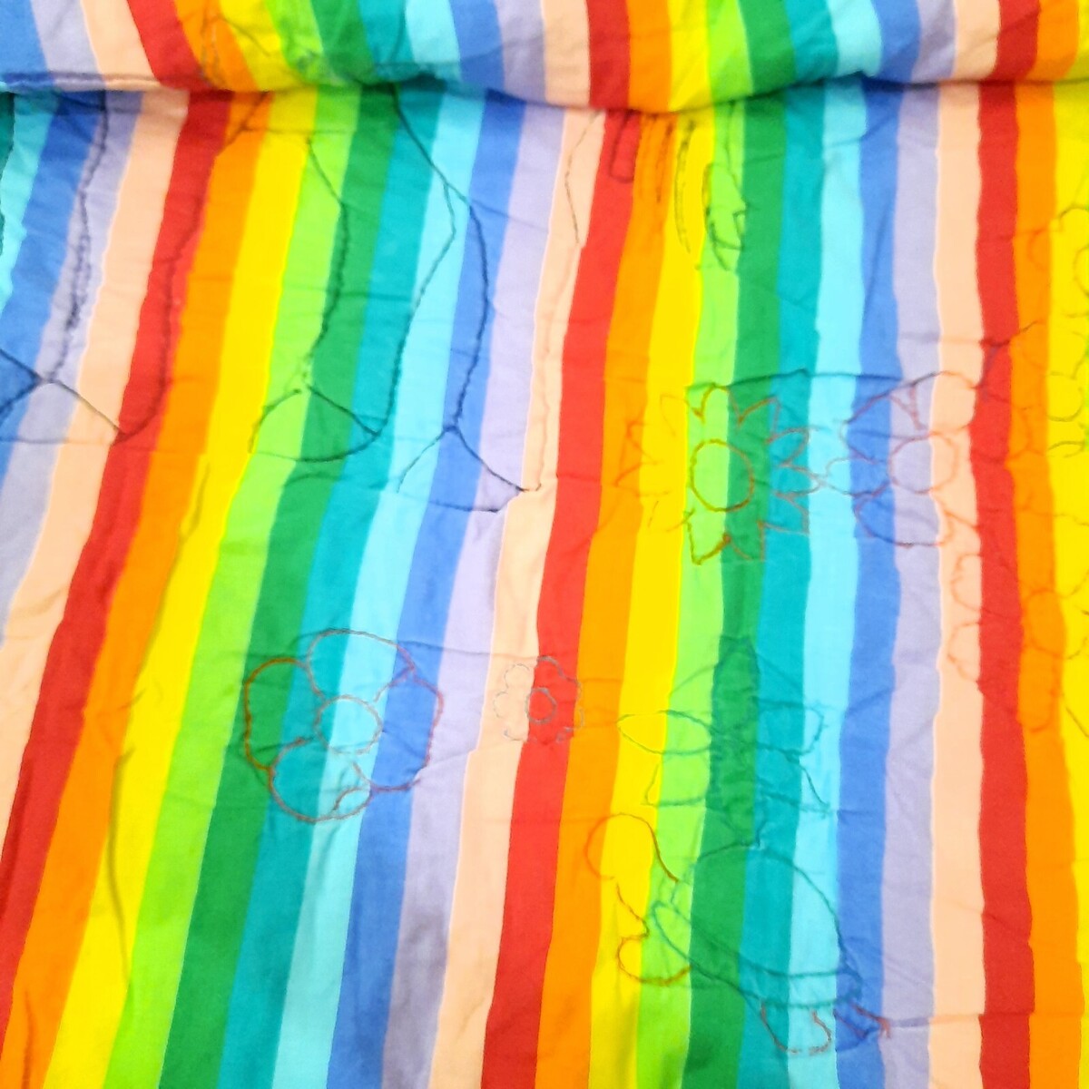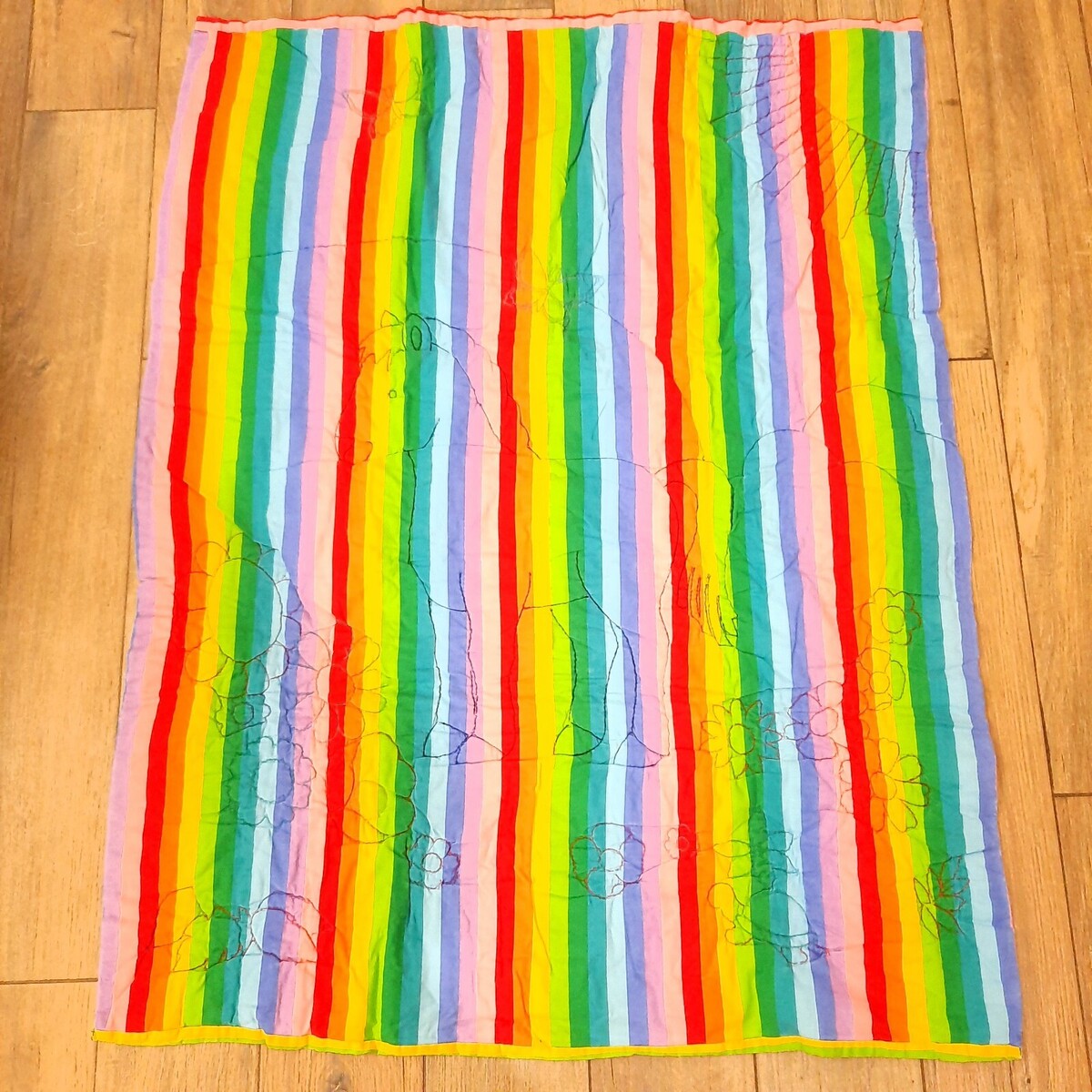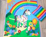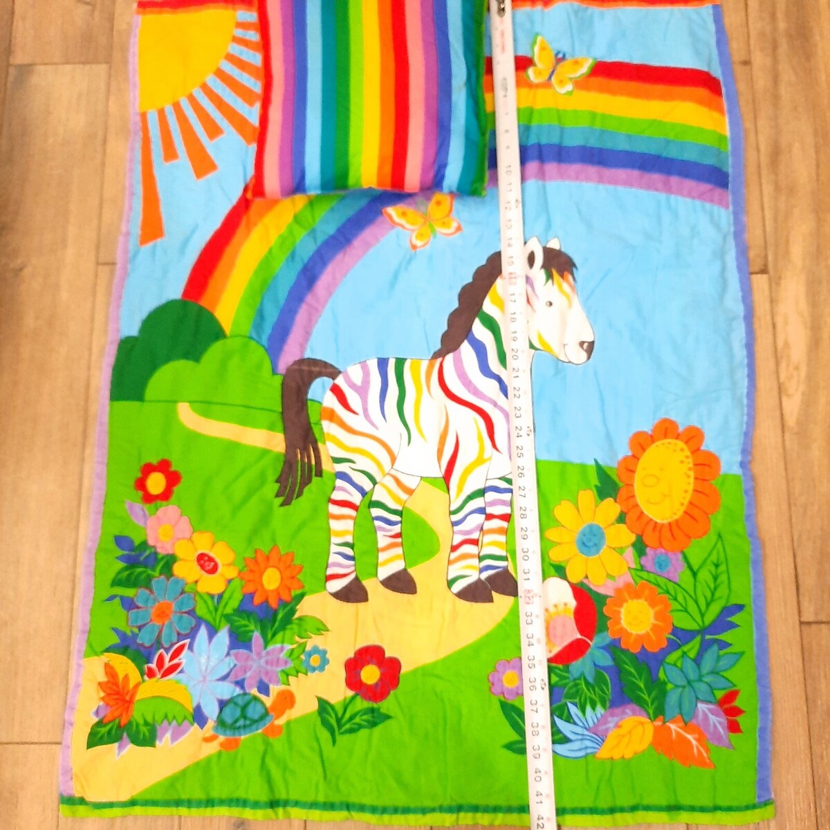 Rainbow Zebra Quilt Baby Blanket comforter toddler kids w pillow bright handmade Very bright happy colors! Handmade. Small hole on the back and imperfection in the print on the Zebra's tail as shown. Otherwise very good condition. Includes small pillow. See pics for measurements.