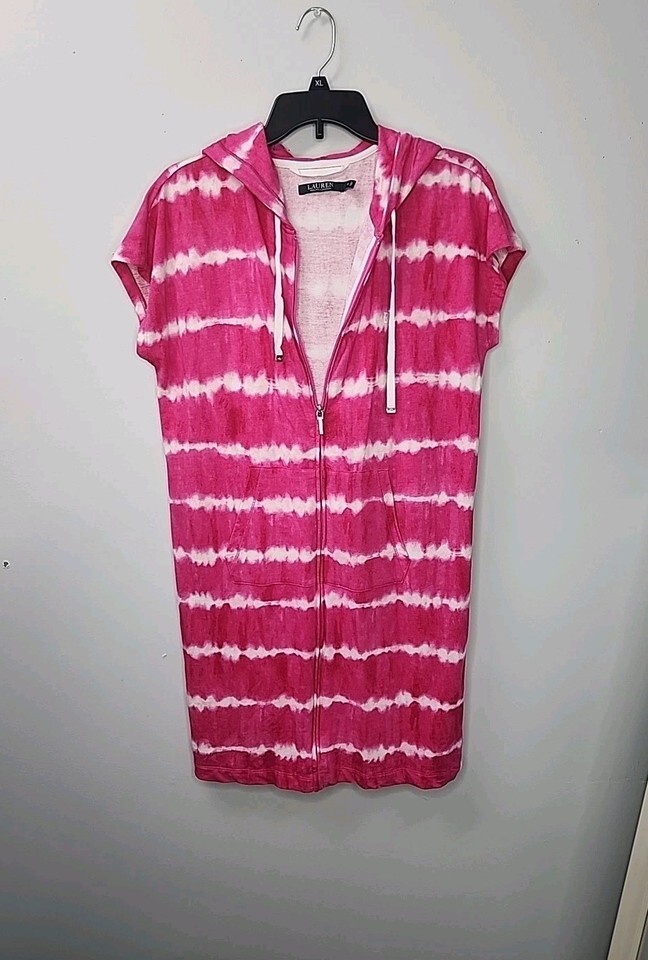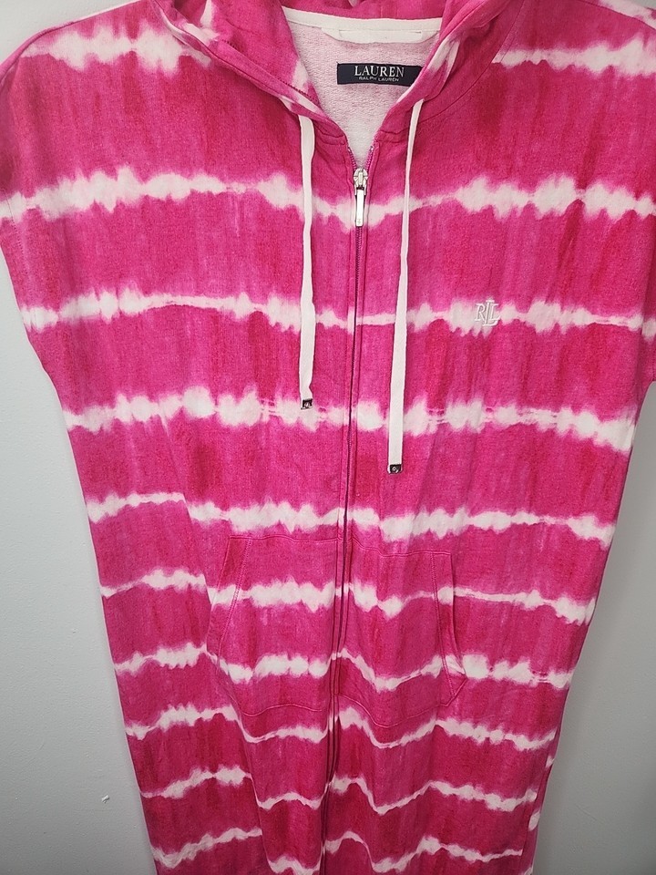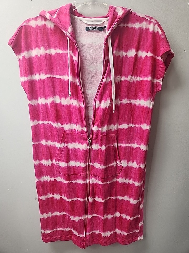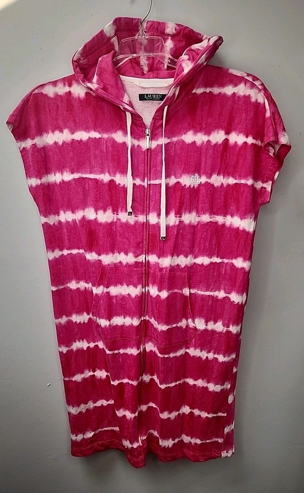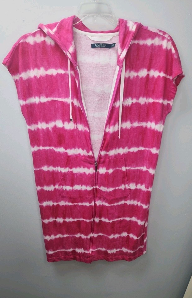 - Ralph Lauren S Bathing Suit Cover Up Pink Zip Up Hoodie Pockets Beach NEW
