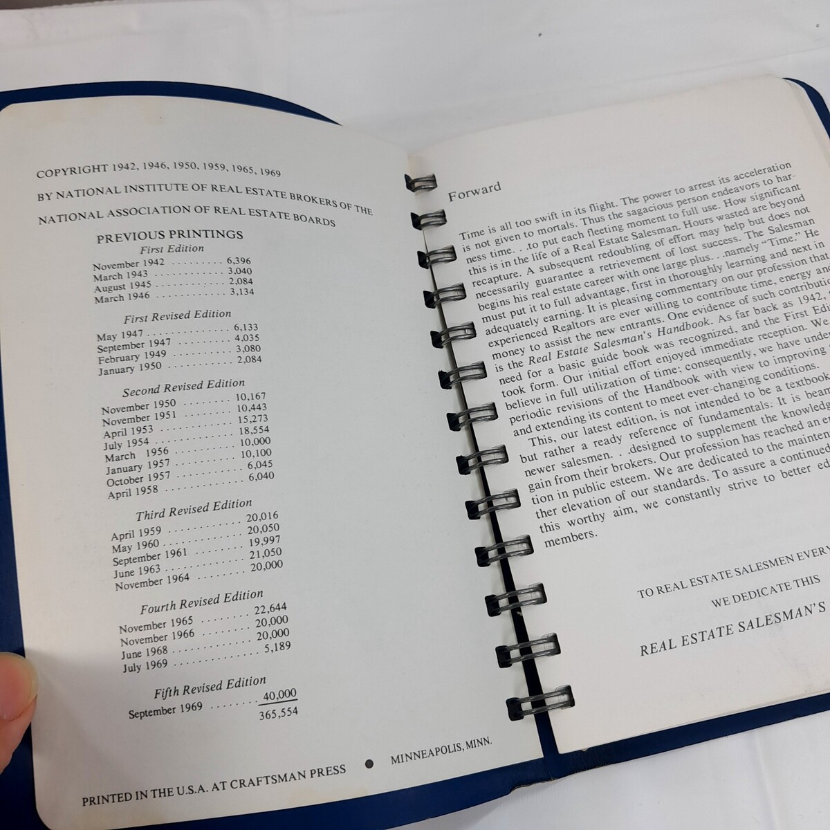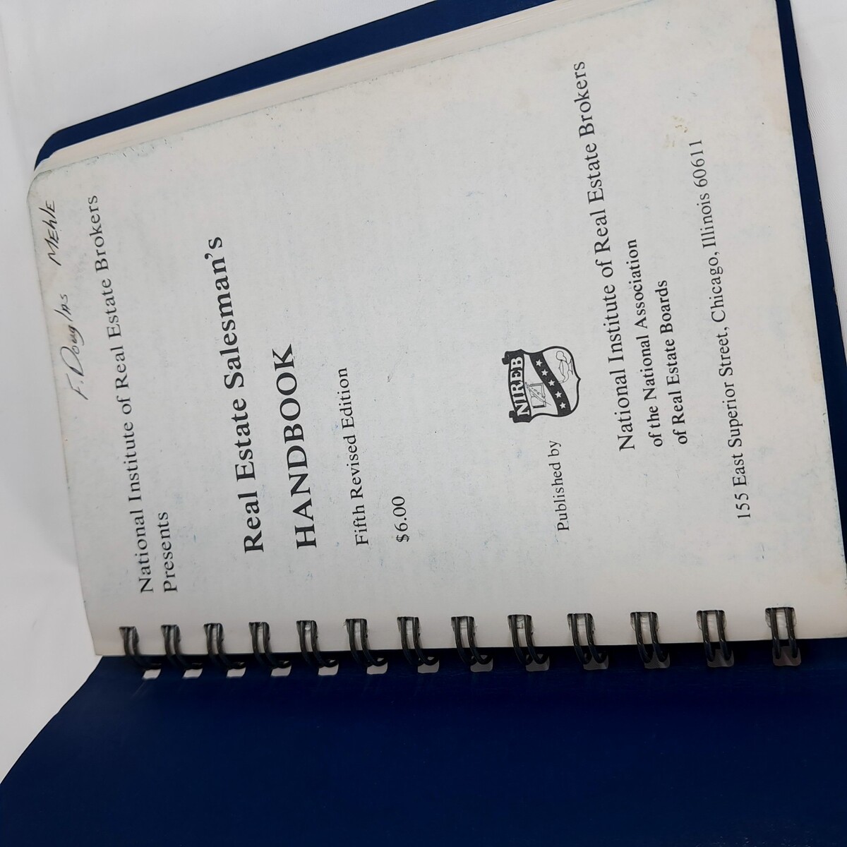 Real Estate Salesman's Handbook book NIREB 1969 5th edition Spiral Bound Vintage Some wear/scuffs/scratches from use. Name written on inside page. See pics for details measurements.